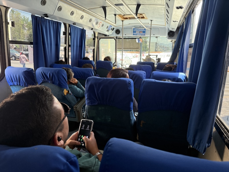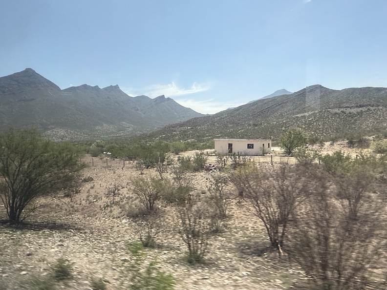 After a fine time in Parras, our bus leaves Saltillo and we’re back into those high dry desert lands and rugged rock-shot mountains that we’ve traveled since leaving Monterrey. Most everybody on the bus seems to think it’s a good time for a nap, but I never want to miss seeing anything along the road. So I’ll sleep later, wherever we bed down for the night.