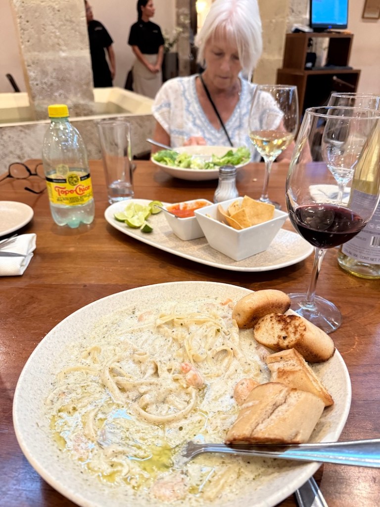 We’re hungry yet again after our nap and the day’s exercise and we embark on a quest for more of the fine food on offer in this little port town. And we follow that up with a pair of amber cognacs to relax into another gentle night in this peaceful village.