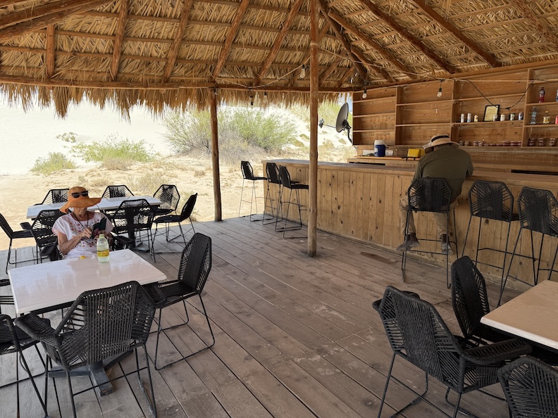 We emerge from the Musee into a warm and sunny day, and there are plenty of people taking advantage of the beach. We settle into a couple of refreshing drinks and watch as one of the anchored yachts hauls up her mainsail and jib and tacks away to some distant destination. It brings back fond memories of our own sailing days and the spray of salt water over the gun’lls. Soon another street band arrives to play a few tunes and we toss some Euros into the basket.