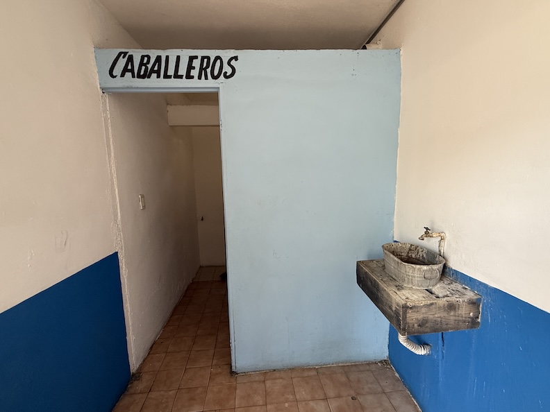 Yet the Hermés bus station is located right on the city’s nice little plaza, beside a pretty stone-walled church. The restroom is interesting, and useable. And soon we’re on the next bus, heading deeper into a hidden corner of these dry mountains of the Sierra Madre Oriental.