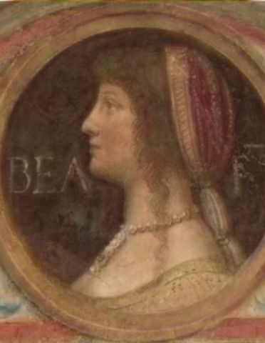 Among many other local luminaries, Beatrice d’Este was one of the more remarkable. She was born in Milan in 1475 and was known early in her short life as a woman of culture, and an important patron of the arts and science. She was a leader in fashion for her time, with 84 dresses in her closet. She was short and dynamic, described by the writer Francesco Muralto as “at a young age, beautiful and of raven colours,”and an active participant in sensitive negotiations with the enemies of Milan.She and her influential husband, Ludovico Sforza, an important patron of Leonardo da Vinci, made Milan one of the greatest capitals of the European Renaissance. And she did all that before she died during the birth of her third child in 1497, at the very early age of 21.