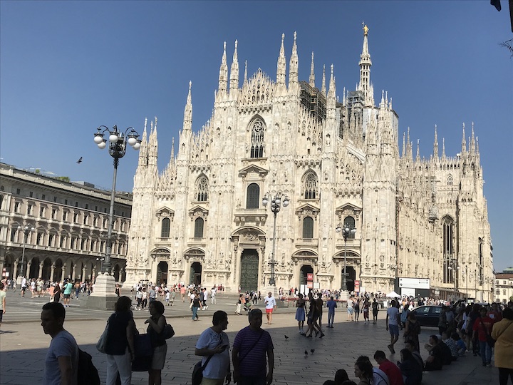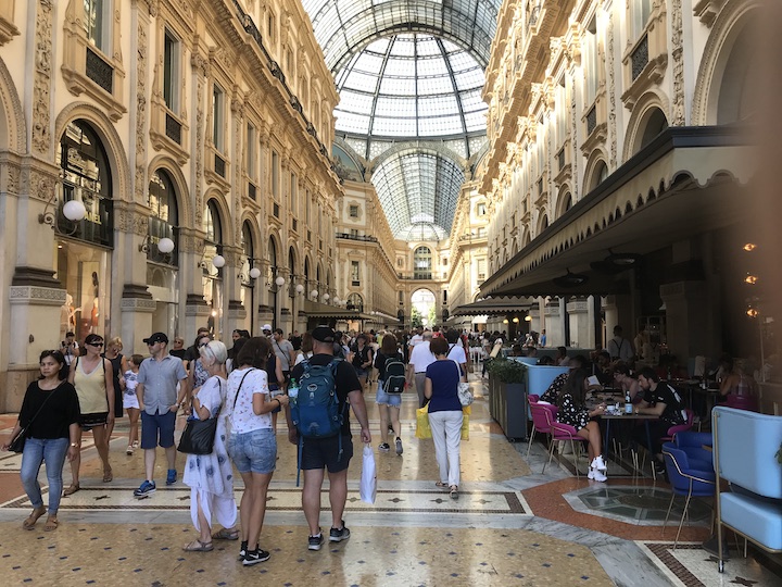 There’s so much to experience in this wealthy city. The towering vaults of the Galeria Vittorio Emanuele II, fabulously rebuilt after WWII, are an eye-opener. There are plenty of ordinary folk like us wandering these halls and the nearby streets to ogle hyper-expensive wares in the windows, and likely also terrified to ask about the prices. And how much would a high-tech security system also set us back to keep that loot from being stolen? A few pictures will do well for me.