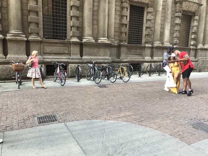In the post-war years Milan regained its place as an international center of fashion, and Milan Fashion Week is now one of the Big Four, along with New York, London, and Paris. These are spectacular events that take place yearly in February-March and in September-October. (In 2022 Gucci found 68 pairs of twins to showcase their wares!) So we’re lucky to be here in July and miss those crowds. Yet there are plenty of everyday fashionistas on the streets to maintain Milan’s certain allure. And in my well-worn second-hand duds, an array of grays and browns, I’ll remain among the folk who are never pestered for an autograph.
