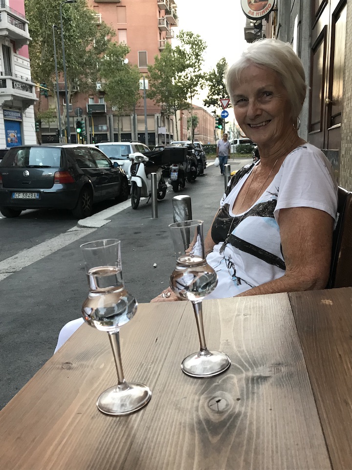 The friendly family proprietors of a little back street hole-in-the-wall respond with a happy, “Sure we have grappa!” And soon we’re nicely relaxed at a tiny sidewalk table with a pair of tasty shots – maybe from the family’s own special bottle! – as pedestrians wander past. It’s another momento molto fino that we’ll later recall fondly, of a fine Italian summer day.