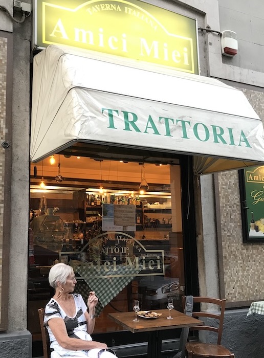 The neighborhood is a bit grungy, but there are parks nearby and sometimes there’s an interesting jumble, a clash, of the very old with the splashy new. But these off-trail places are where you’ll find some of the best food! Local ristorantes need to plate out la nonna’s best recipes because they don’t have a captive tourist base and they have to please I vicini, the neighbors, to stay in business. And we also get the benefit!