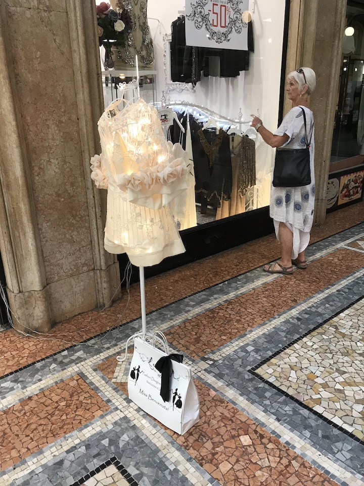 Our next tram rambles onward into modern developments, where there’s an Apple Store and a Costco at the end of the line. The return puts us into the developing urban Quartier Antigone, where we hop off by the statue of Apollo for a bite of lunch at the huge Galleries Lafayette shopping center. It’s late September, so there are plenty of sales still underway for ‘La Rentrée,’ French society’s annual Fall ‘re-entry’ into the working world after the Summer holidays.