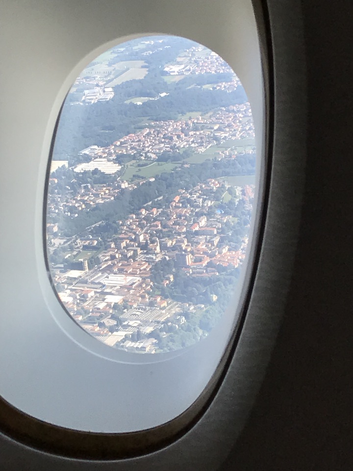 We began this excursion three months earlier in Paris, and then took numerous trains on a long loop through six different countries. And this homeward flight was a fine way to end an amazing summer. — PRW