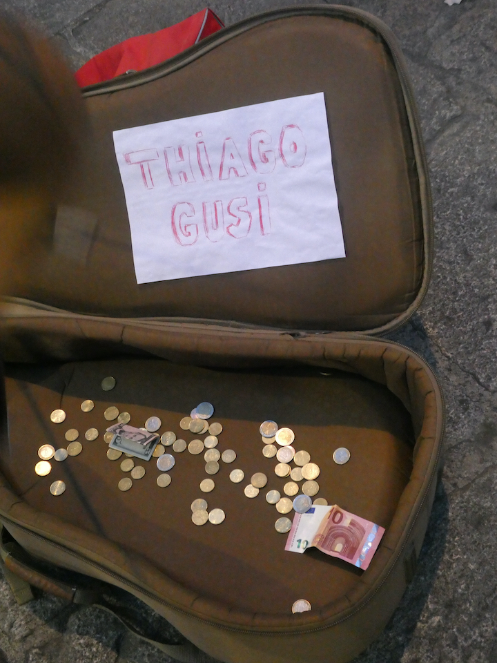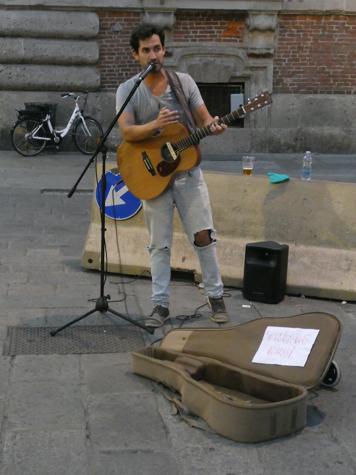 A talented busker is standing at a spot where his music nicely fills the intersection of two narrow streets. Then a guy beside me half-whispers, “Do you know who that is!?” The guy seems pretty excited and says, “That’s Thiago Gusi! Right there on the corner!” I’m duly impressed with the music, although I really don’t know who he is. I later search him out and realize he’s a young star these days in Europe and Las Vegas, and now he’s right there in front of us busking for coins, and having a bit of fun!, on a quiet Milano backstreet corner. It’s the kind of crazy-good thing we stumble across in our travels, and he smiles as I drop a few Euros into his basket. https://www.youtube.com/watch?v=tZZtTtA9Sjg