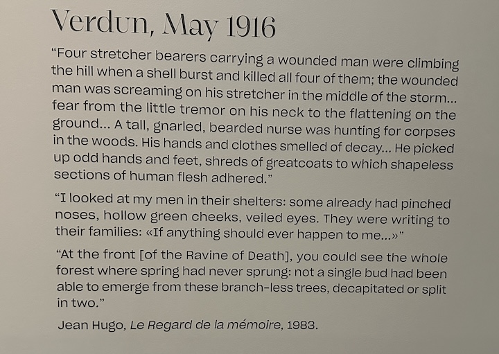 Images of villages with shattered walls and shattered people are reflections of the butchery he witnessed in WWI that influenced his work. In his diary he recorded horrible images of the insanity at the 1916 battle of Verdun, which cost about 750,000 total casualties between German and French troops over a period of 302 days. And the gains by each side were negligible.