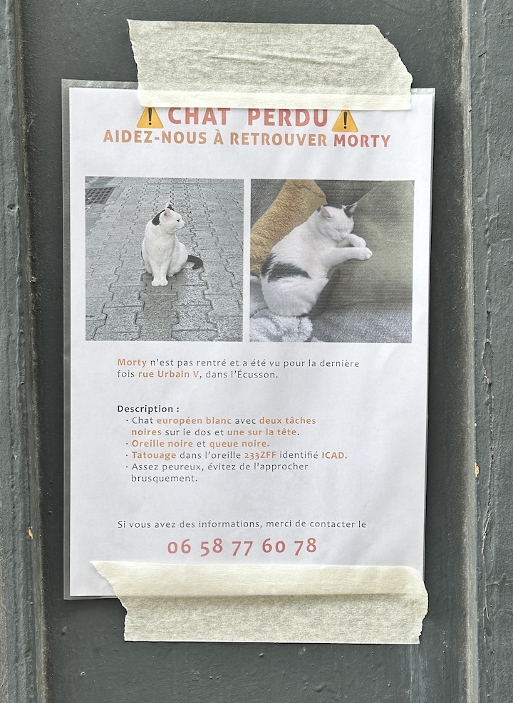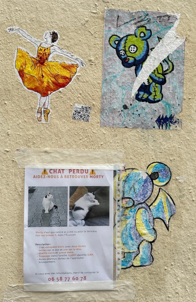We spend the rest of the day exploring the ‘mountain’ and its many narrow streets with their interesting examples of wall art. And of course there’s a poster for a lost cat named Morty in this old university district.