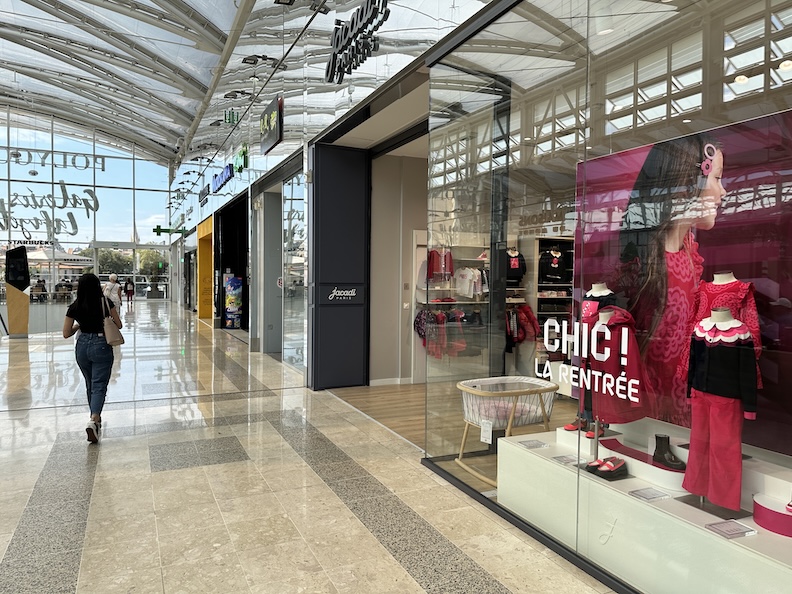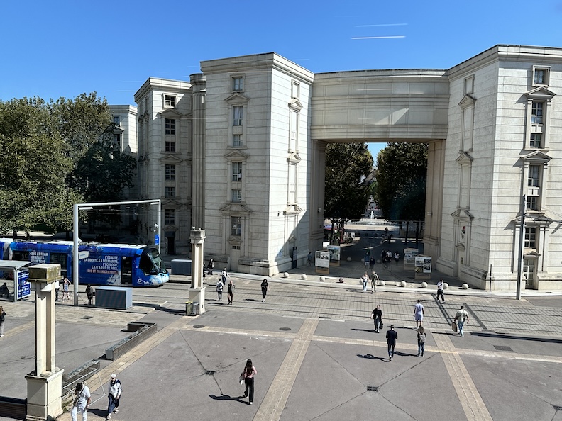 Our next tram rambles onward into modern developments, where there’s an Apple Store and a Costco at the end of the line. The return puts us into the developing urban Quartier Antigone, where we hop off by the statue of Apollo for a bite of lunch at the huge Galleries Lafayette shopping center. It’s late September, so there are plenty of sales still underway for ‘La Rentrée,’ French society’s annual Fall ‘re-entry’ into the working world after the Summer holidays.