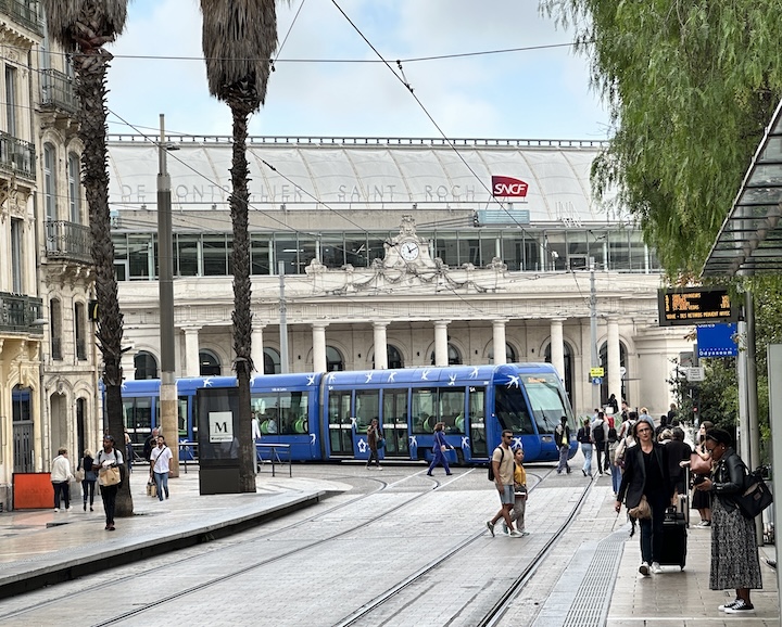 But there’s a hitch in the plans. As we’re waiting by the strangely-silent tracks, a notice keeps flashing on the schedule board. I attempt to decipher it with my abysmal French, as it seems to say – and I dearly hope I’m wrong – that there’s a strike or something and our train will not arrive at all today. A few other folks arrive and then wander off. We are soon joined by a very nice young Frenchman, who is planning to visit his new wife in Barcelona, and he confirms my inept translation.
