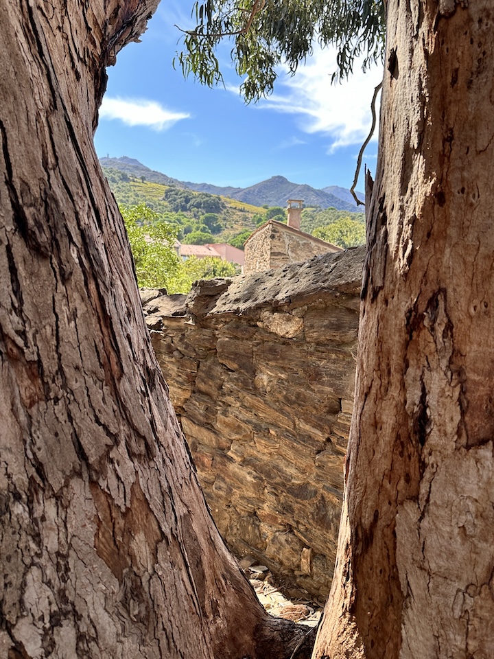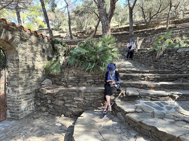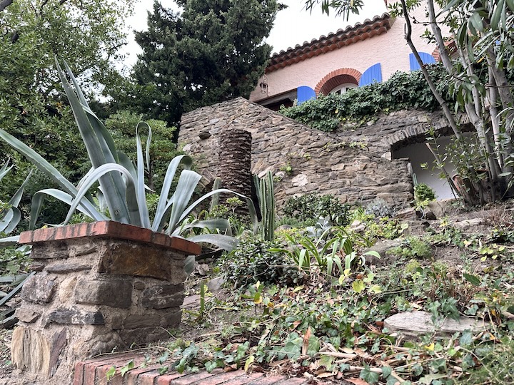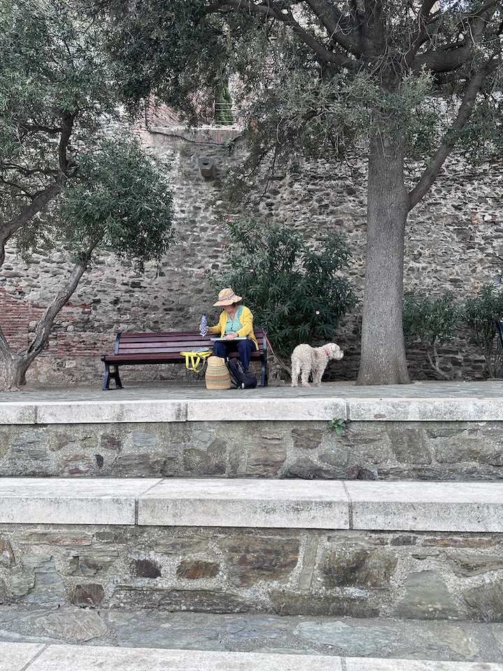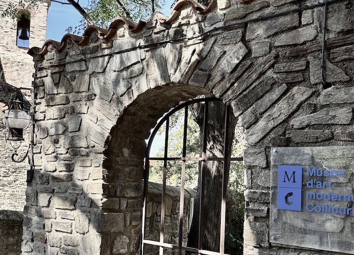 This is the day we’ll wander off to find the Musee d’Art Moderne de Collioure. It’s up a stone walled back alley that leads to more precious views over the countryside. We’re just a bit early, and it’s a fine place to relax for awhile on rocky steps under the old olive trees. We count ourselves lucky once again.