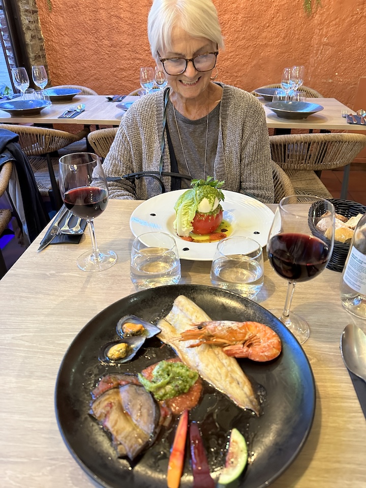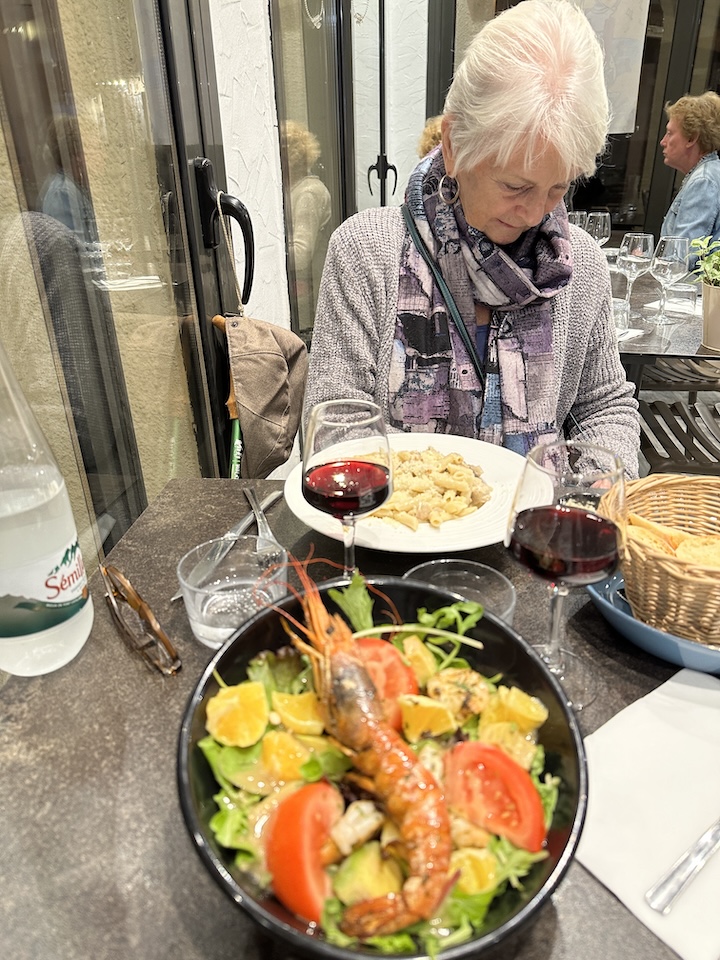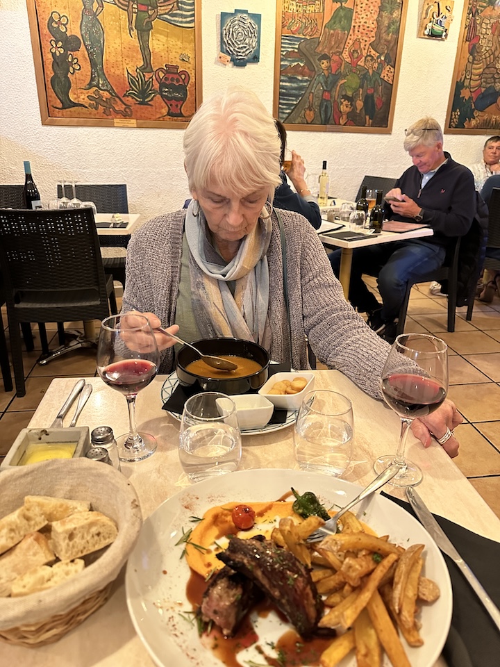 We’re hungry yet again after our nap and the day’s exercise and we embark on a quest for more of the fine food on offer in this little port town. And we follow that up with a pair of amber cognacs to relax into another gentle night in this peaceful village.