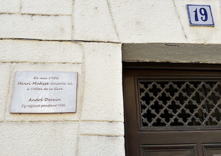 This is also the day when we need to buy train tickets onward to our next destination, as we’ll be departing again in just a few more days. A placard on a building we pass along the uphill walk to the station notes that Matisse and Derain both lived in that particular house in 1905.