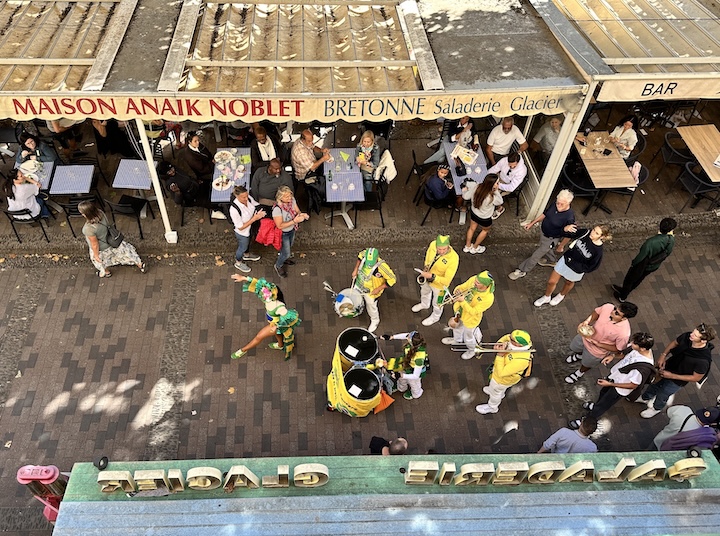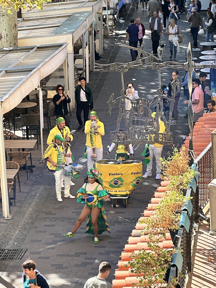 And just about the time we get back to our room for an afternoon nap, there’s a Brazilian band, steel drums and all, marching and strutting down the street below. The nap can wait.