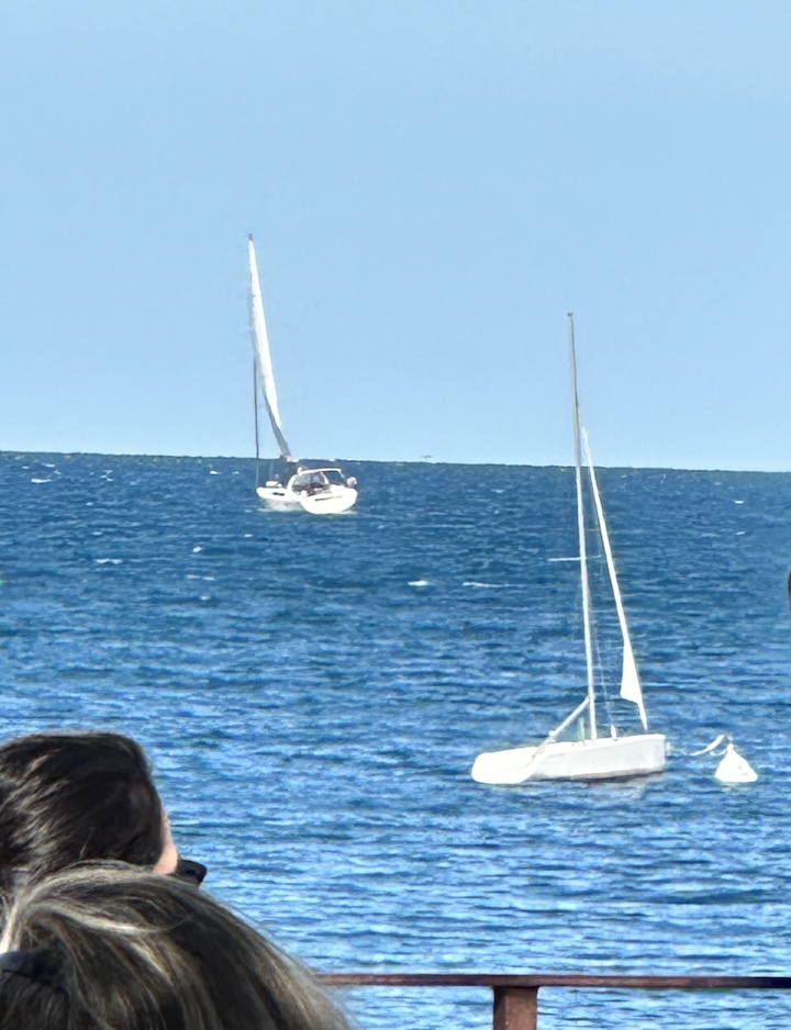 We emerge from the Musee into a warm and sunny day, and there are plenty of people taking advantage of the beach. We settle into a couple of refreshing drinks and watch as one of the anchored yachts hauls up her mainsail and jib and tacks away to some distant destination. It brings back fond memories of our own sailing days and the spray of salt water over the gun’lls. Soon another street band arrives to play a few tunes and we toss some Euros into the basket.