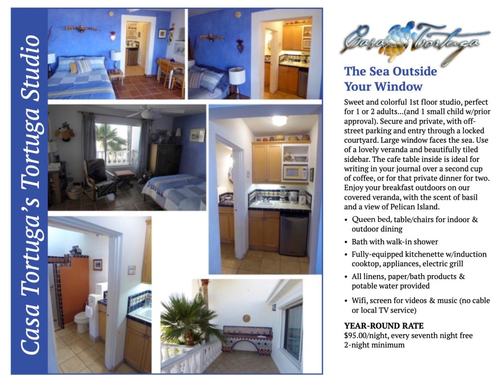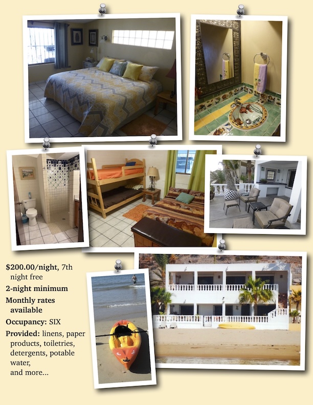We have two studio apartments, and we manage another full two-bedroom apartment, in beautiful Bahía de Kino, Sonora, Mexic0, right on the beach on the Sea of Cortéz.